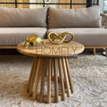 Mesa de centro Boa elaborada en madera maciza flor morado, con una base en madera torneada.